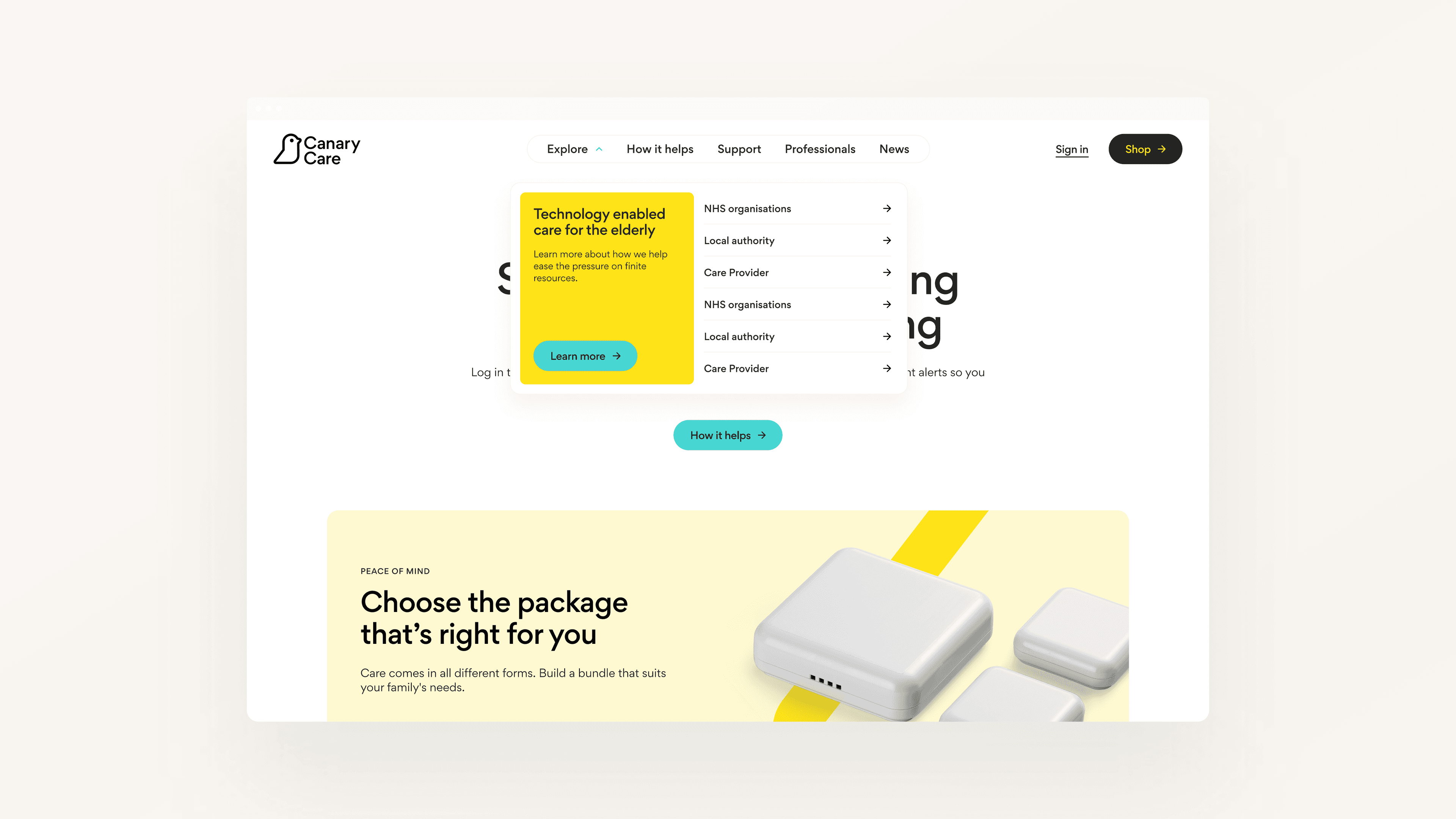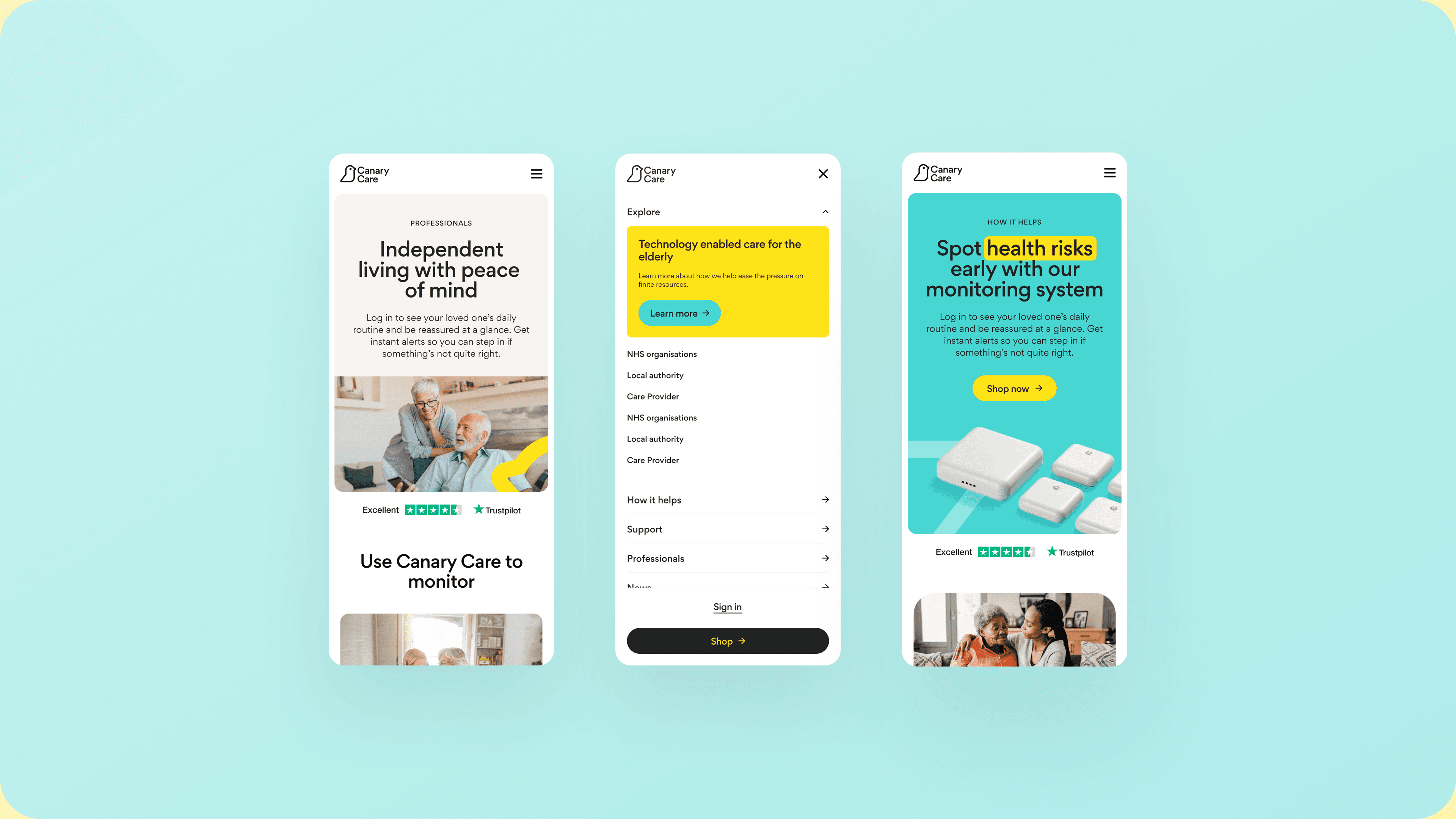 Canary Care provides smart home monitoring solutions that support independent living for vulnerable people. Marketed directly to consumers and professionals in local authorities, NHS organisations and care providers, they needed a digital experience that would present an approachable experience to all of their customers, clearly communicating the benefits of their solutions.