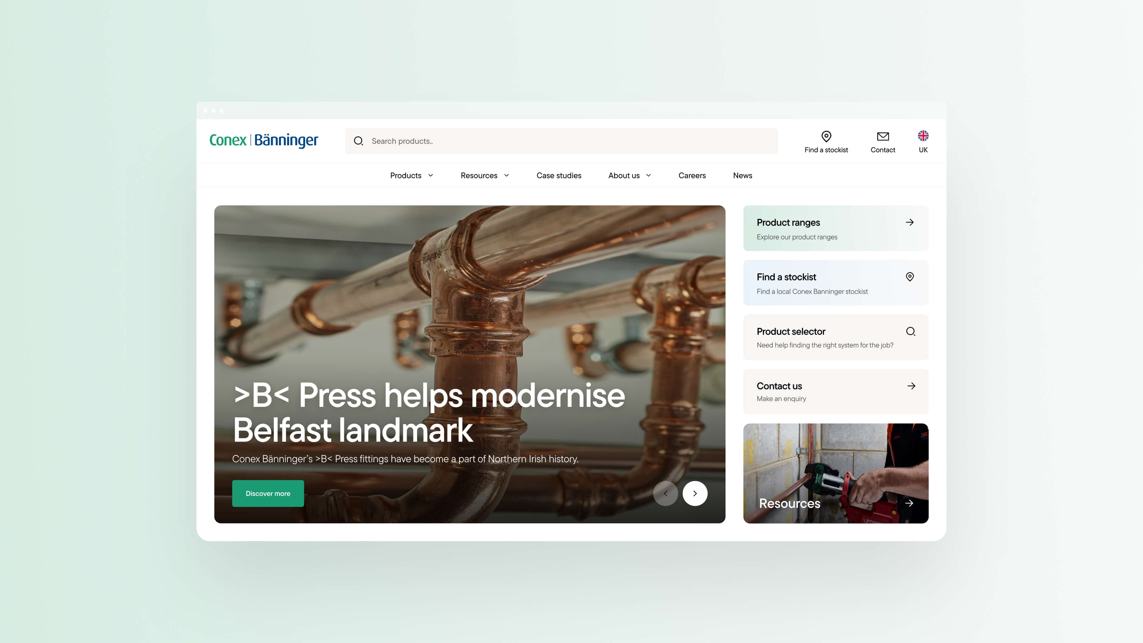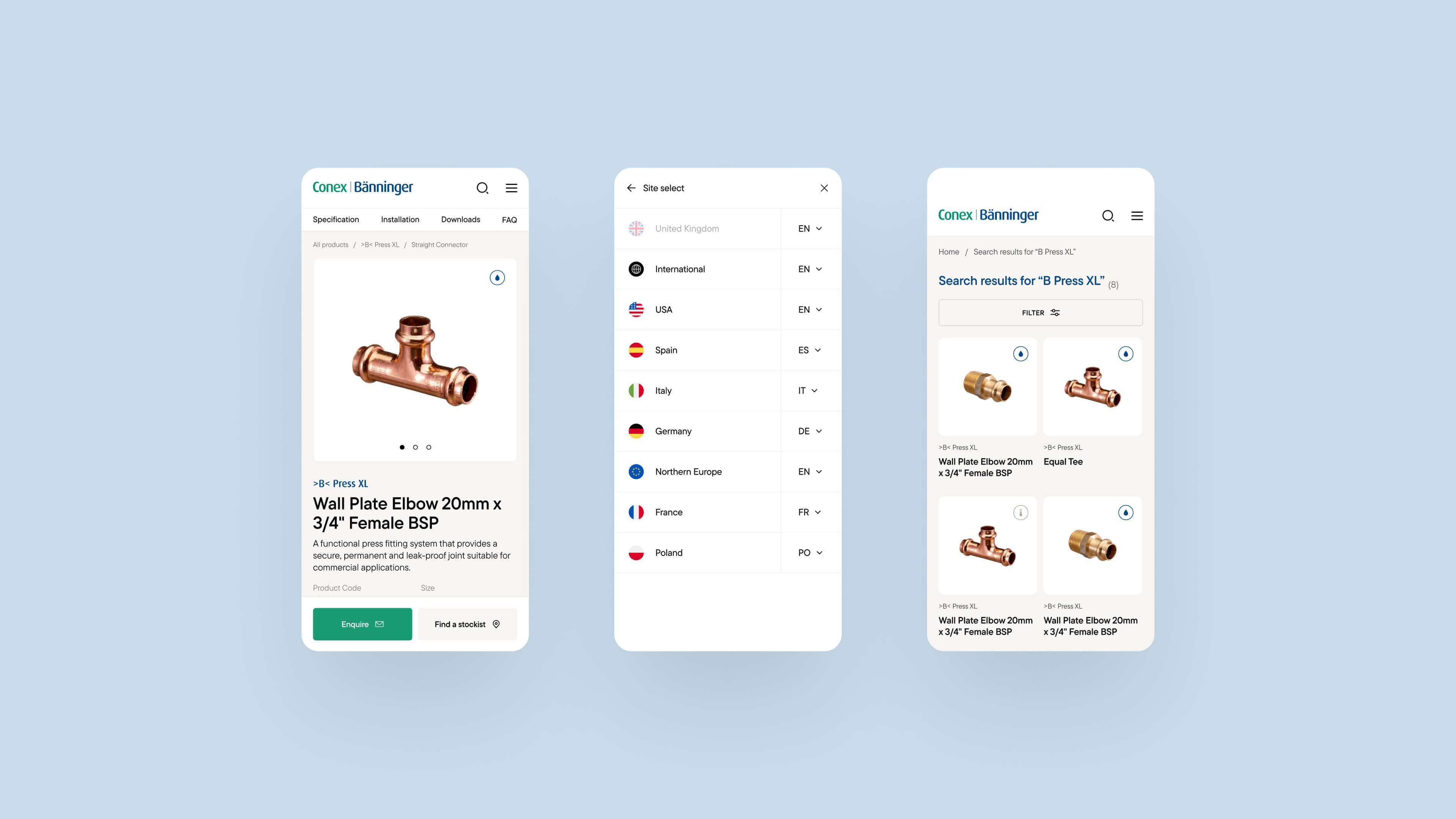 Conex Bänninger is a global manufacturer and supplier of fittings and valves for plumbing, heating, air conditioning and refrigeration. They needed an elevated and futureproof digital experience which would align websites for their separate global business units in one platform, ensuring consistency in messaging and simplified management of products.