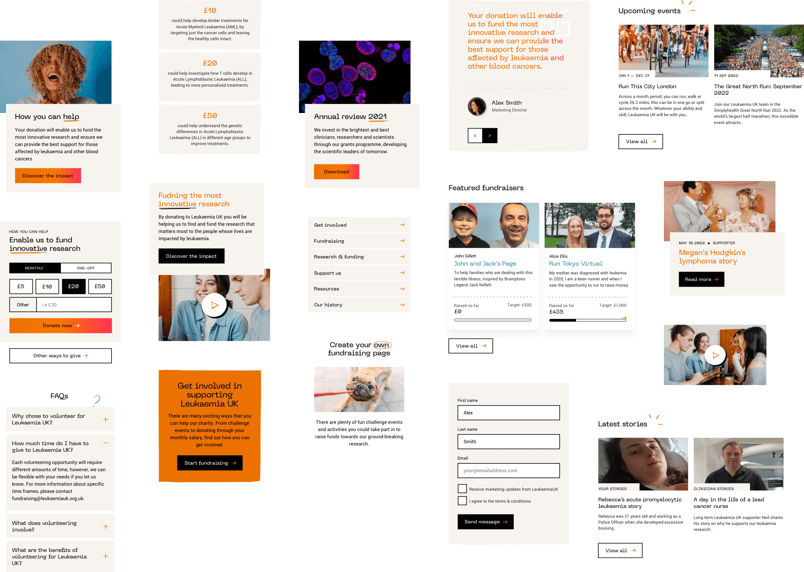 The focal point of the project was the new front-end user experience. Powered by our Enterprise WordPress solution, it’s a powerful platform where Leukaemia UK can bring together donations, fundraising and engaging content about their cause to increase their impact. To help LUK deliver a consistent experience across their digital platforms, we created a design system of flexible components which could be used across their ecosystem.