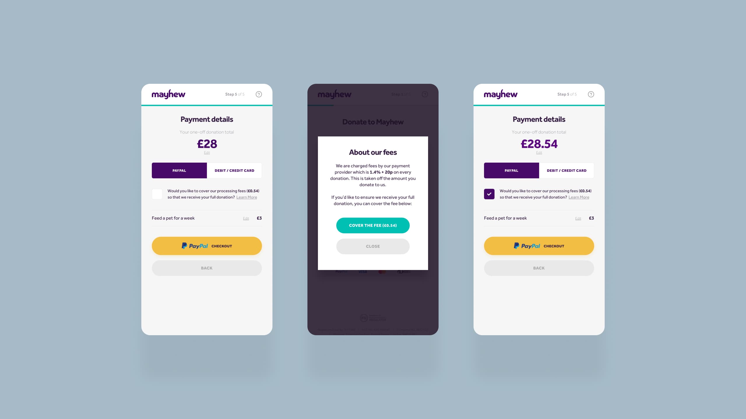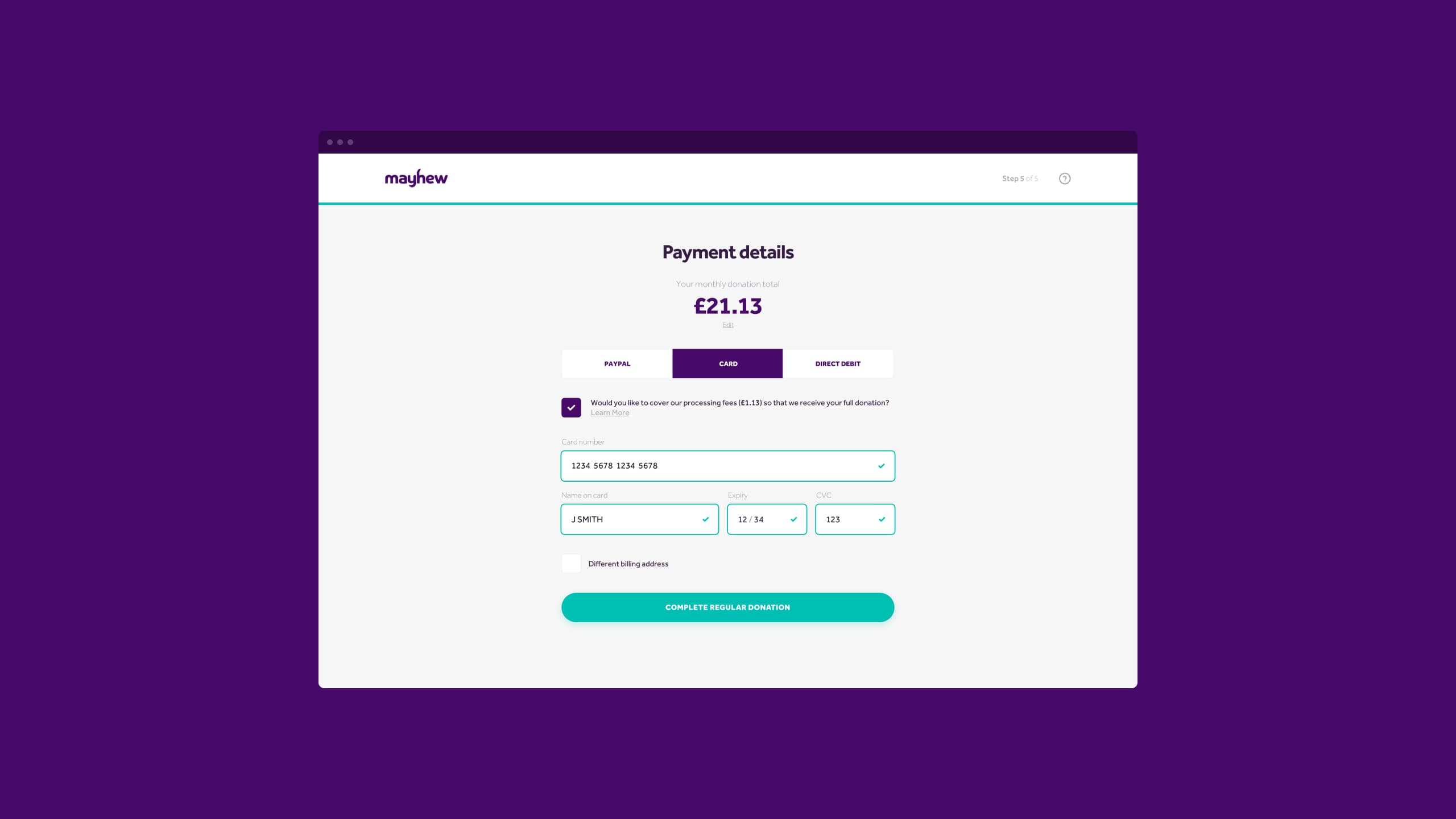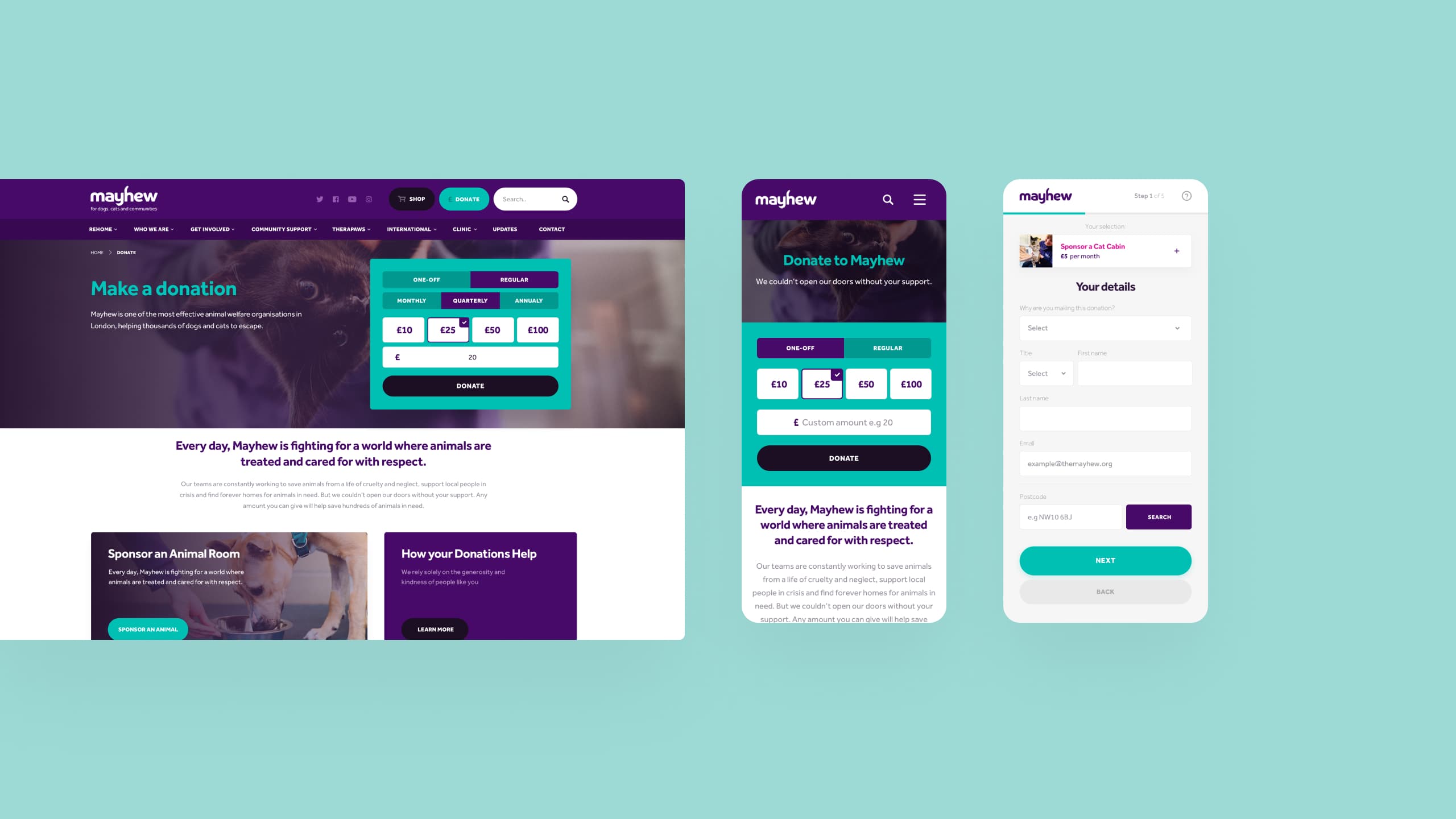To aid this, we introduced functionality such as automatic address lookup and streamlined data protection messaging. Due to the build approach we took, users could access every stage of the donations funnel without the need for the page to reload, making the process quicker.