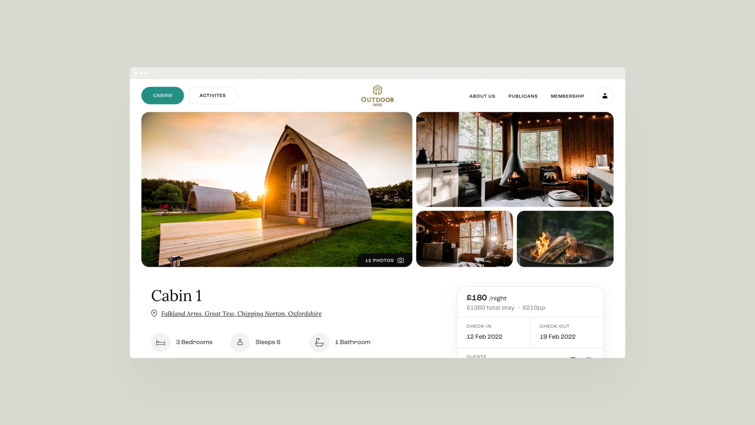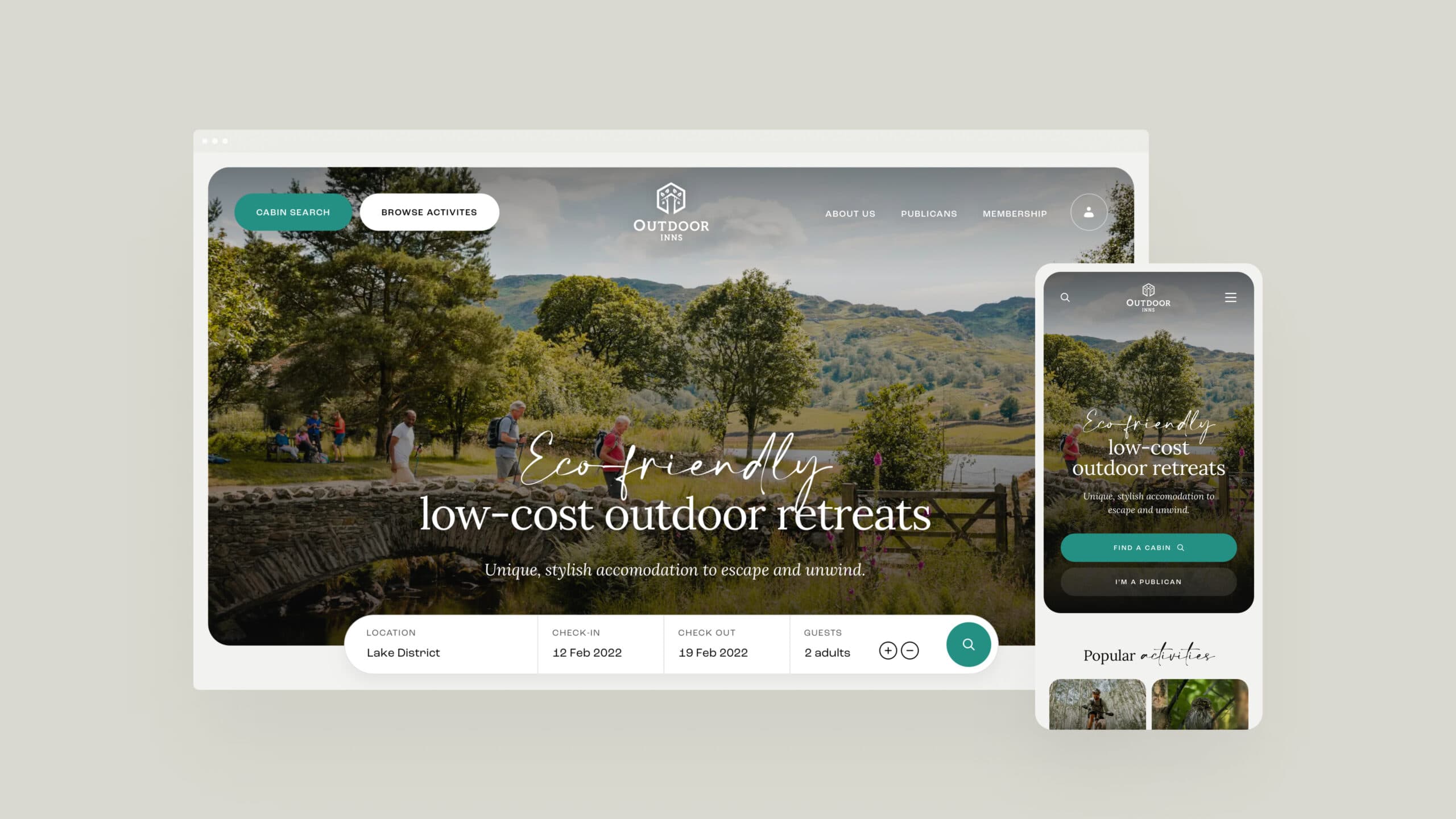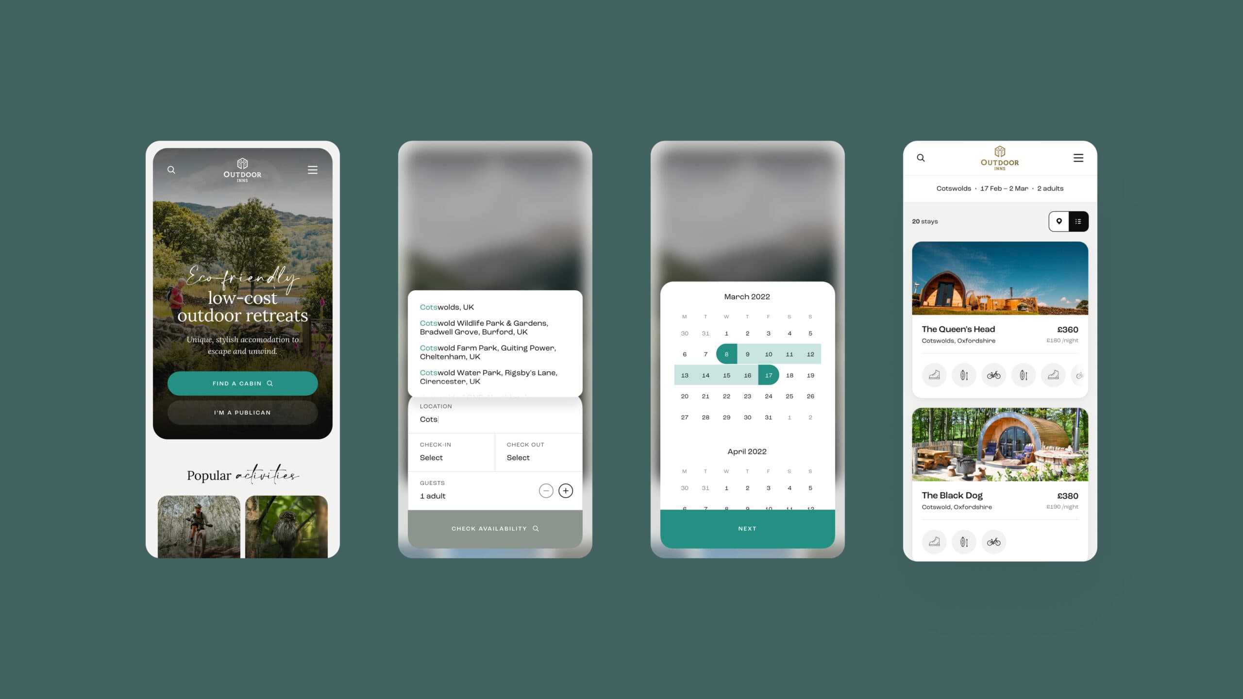 Outdoor Inns is an exciting startup with a smart business model. They provide eco-friendly and affordable places to stay in the UK’s most beautiful locations, partnering with rural pubs to support local independent businesses. They partnered with us to scale their offering by elevating their customer-facing end-to-end booking experience.