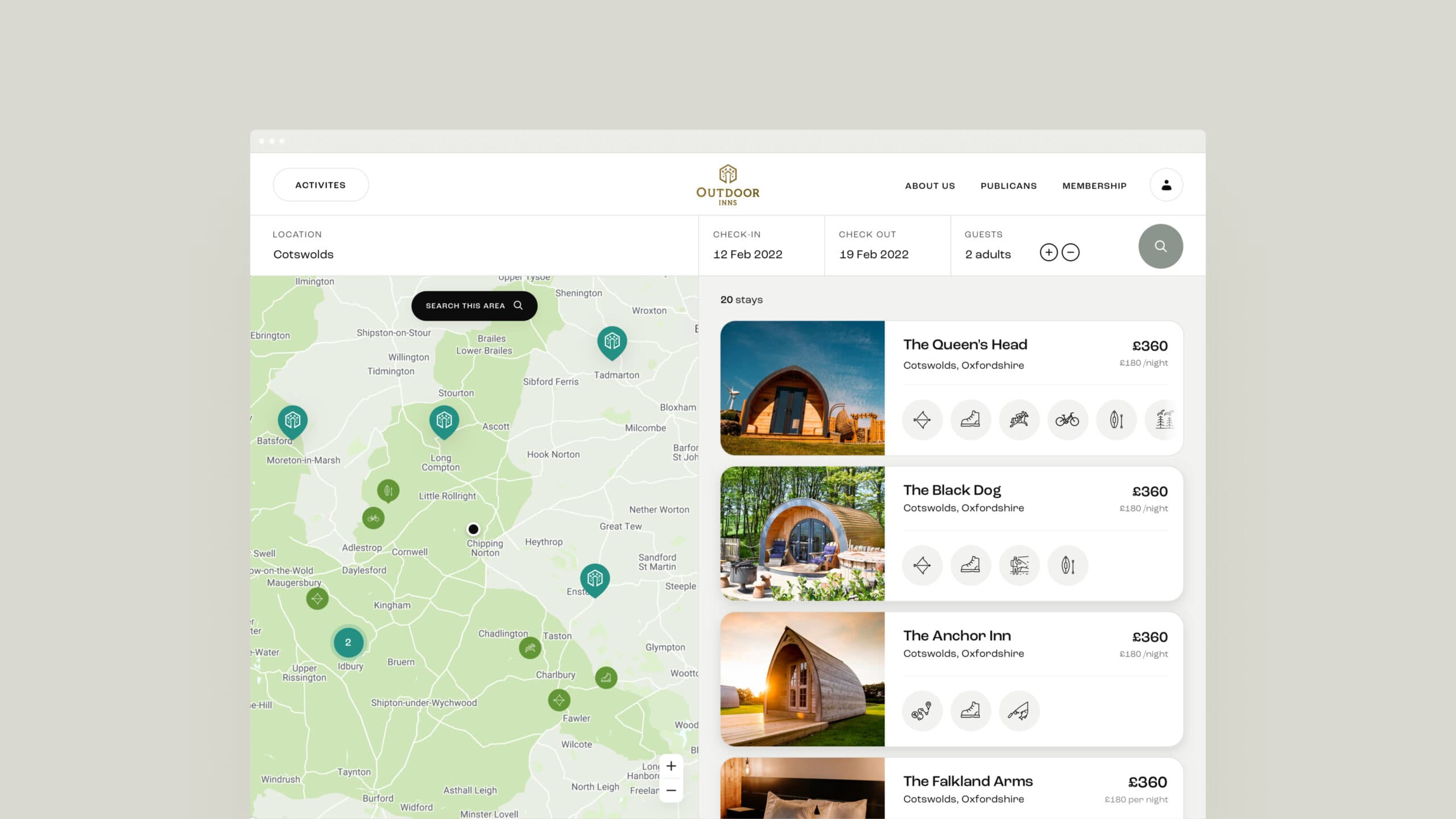 As a new venture, we understood from the start the importance of building trust with users and offering an effortless booking experience. Through our proven discovery process, we were able to work with Outdoor Inns and connected providers to fully map out the technology, booking management processes and associated user journeys. It was also noted how important it was to showcase the entire experience just as much as the accommodation – the story and ethos of Outdoor Inns, as well as everything that the UK countryside has to offer in terms of activities and places to visit.