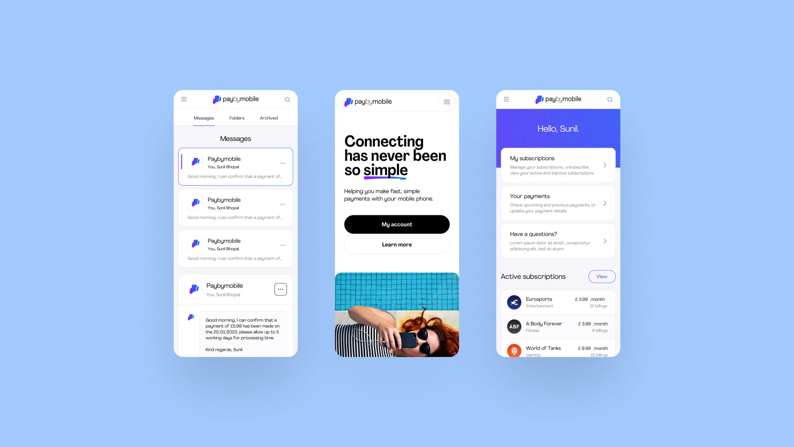 The relaunch of the customer portal required a new brand for the PayByMobile offering. We created a logo and design system to give the offering a striking identity that was also in line with the wider PM Connect brand.