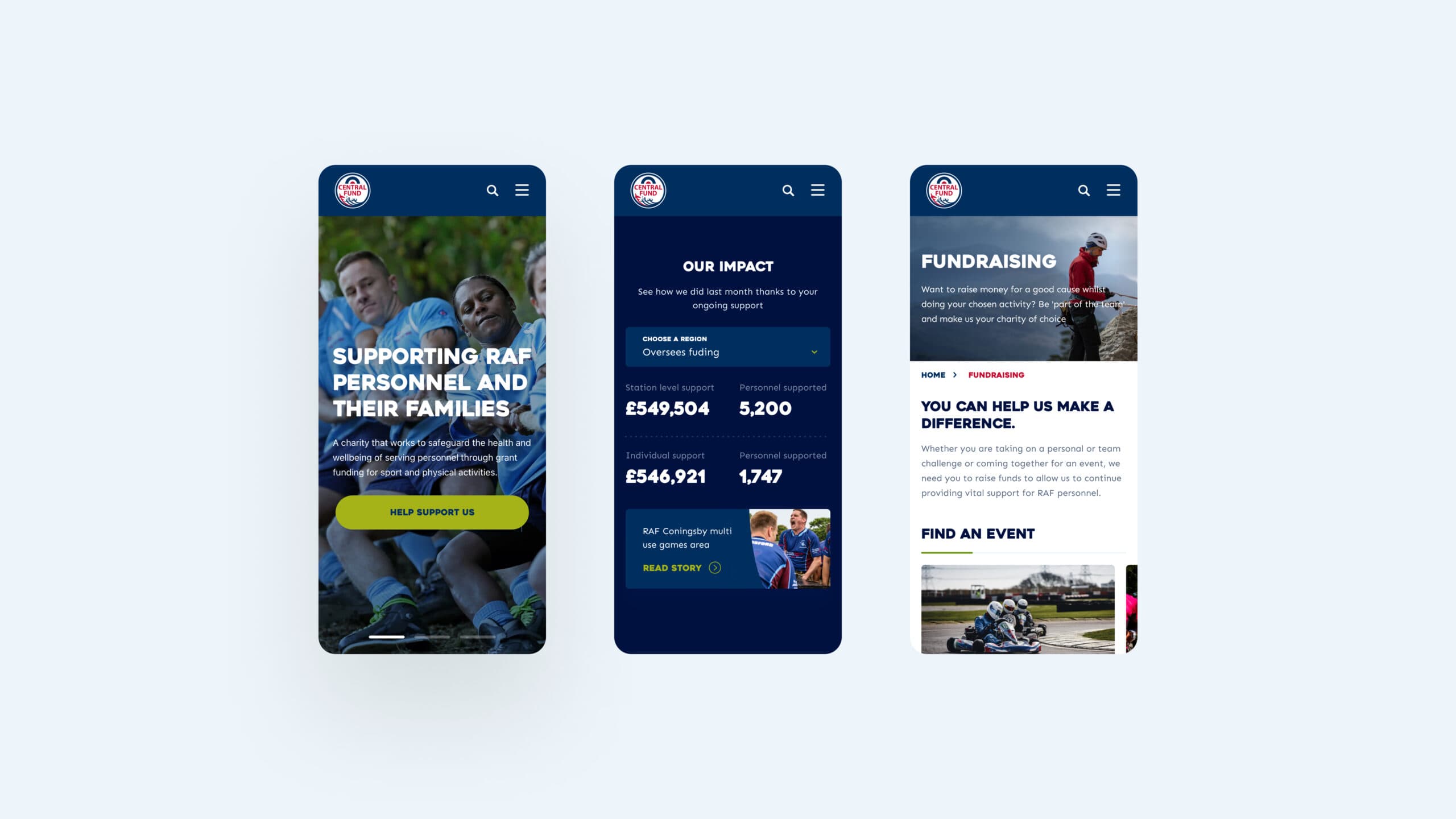 The charity wanted an easy way to show where grants had been distrubuted across the country. To do this we built an interactive fundraising map that broke down the funding by region. The regions then linked to stories around how the grants were used to help personnel.