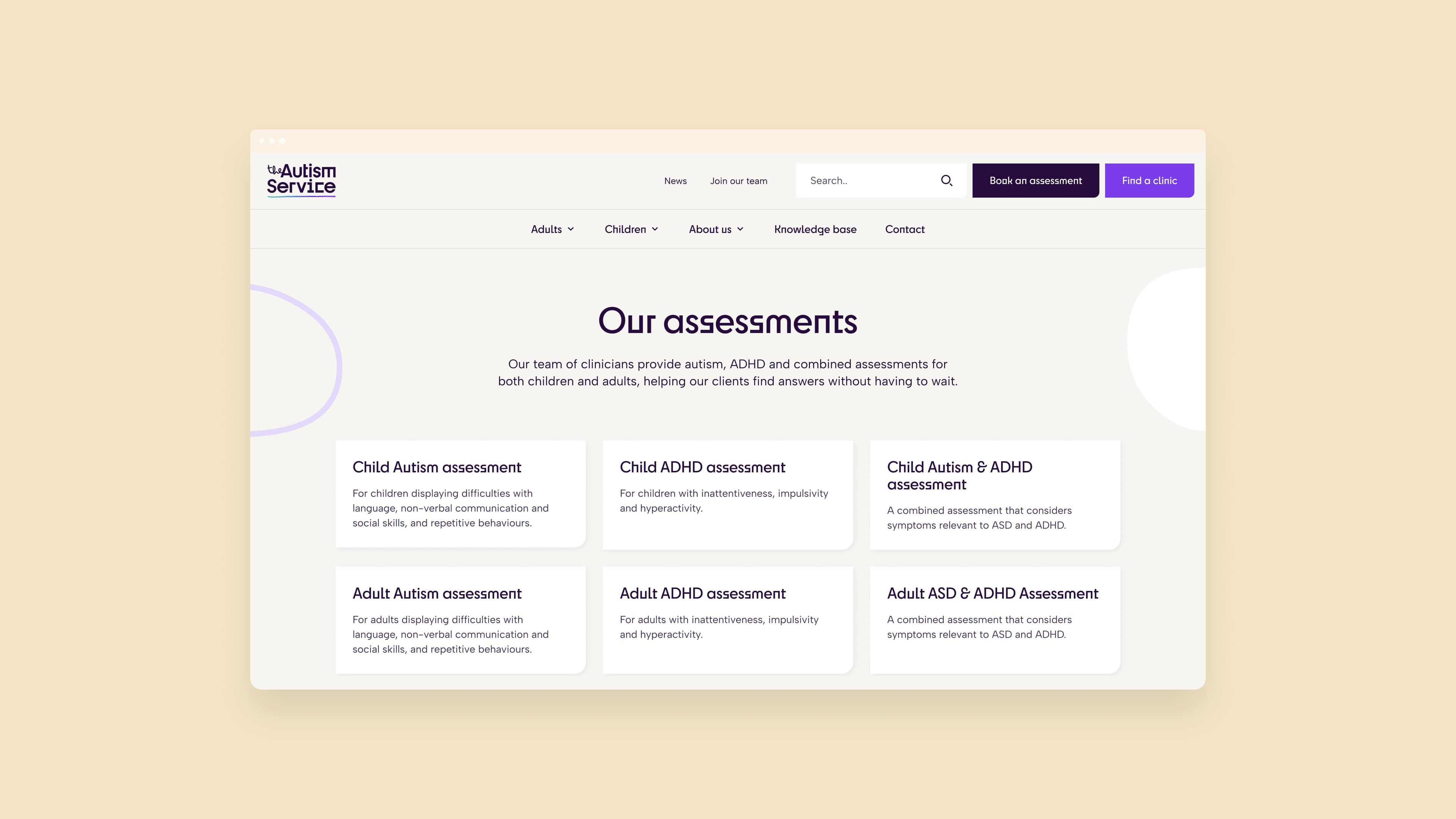 The Autism Service provides reliable, private autism and ADHD assessments for children and adults. With a team of over 60 healthcare professionals and 27 clinic locations across the UK, they needed a platform that would make their nationwide assessment services easily discoverable and bookable, while also offering accessible information and resources on autism and ADHD in a centralised hub.