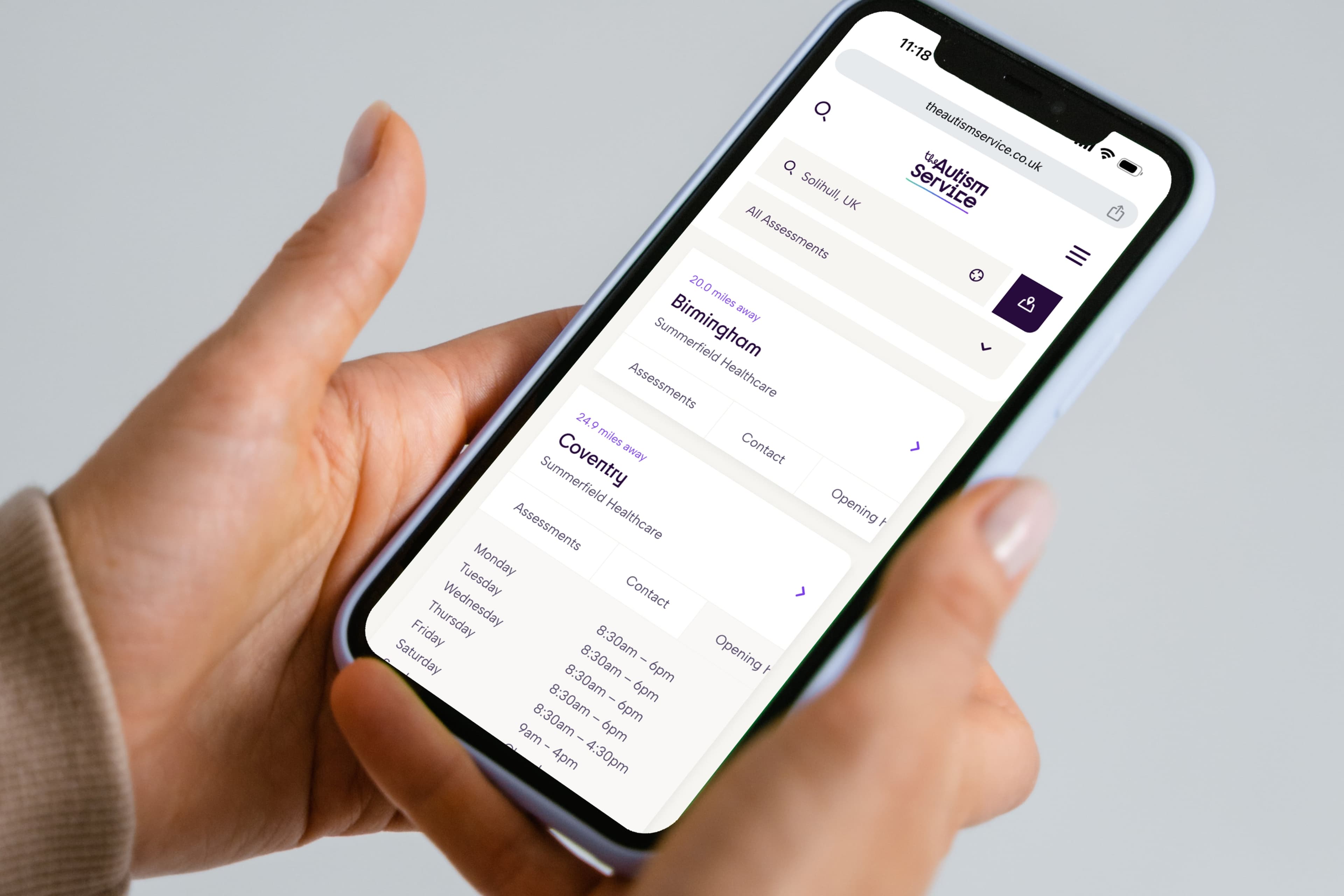 After experiencing a significant increase in demand over the last few years, The Autism Service needed a platform that would allow potential service users to easily find their nearest clinic and available assessment services. We built a powerful search function with search results presented in map view that allows users to find a nearby clinic based on postcode, city or current location with minimal clicks. The search function is optimised for accuracy and speed, and the interface is designed to display crucial clinic and service information at a glance.
